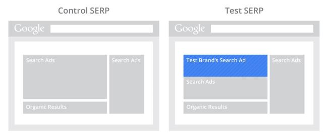 Суть исследования заключалась в том, что для каждого сегмента выбирался конкнертный бренд, а пользователям демонстрировалось два варианта выдачи – обычная и ”искусственная”. Разница между страницами была лишь в том, что в спецрзамещении ”искусственной” страницы была реклама ”тестового” бренда. В свою очередь самих пользователей разделили на две группы: опытную и контрольную. Опытная видела ”искусственную” страницу, а контрольная – обычную. Стоит оговориться, что ”тестовый” бренд мог появляется в поисковой рекламе и на обычной странице.