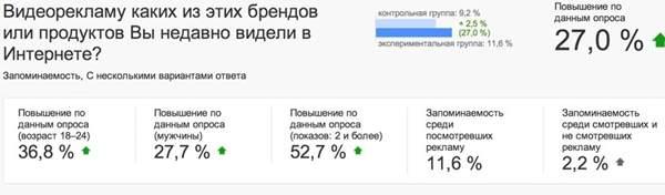 Эти данные позволят рекламодателю определить, на кого лучше влияет его реклама – на мужчин или на женщин, какая возрастная группа лучше ее запоминает и насколько увеличение частоты показа влияет на узнаваемость бренда.