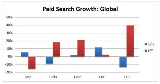 Цена за клик увеличилась на 12% в сравнении с 2013 годом и на 2,4% по отношению к предшествующему кварталу.