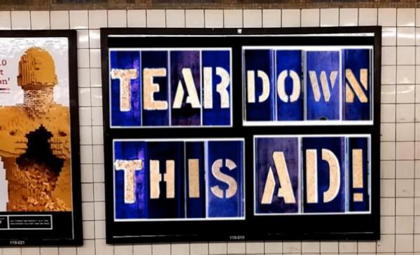 Нью-Йорк – это город пешеходов и пассажиров. Ежедневно подземкой пользуются 5,5 млн человек. Рекламодатели не упускают такой возможности и буквально атакуют потребителей объявлениями. На протяжении долгих лет уличные художники пытались захватить это общественное пространство, но за рекламодателями не поспеть: брендированные вагоны, станции и пестрящие плакатами стены. Поэтому активисту PublicAdCampaign Джордану Сейлеру и Джови Романо, ведущему арт-блог, пришла в голову идея по борьбе с вездесущей рекламой.
