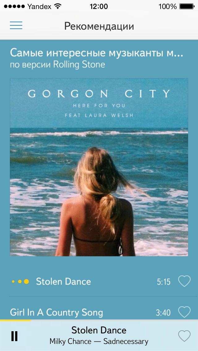 Главная особенность нового сервиса — система персональных рекомендаций. Она учитывает личные предпочтения пользователя, знакомит с музыкой, которую слушают его друзья из «ВКонтакте» и Facebook, и рассказывает о музыкальных новинках. Любой понравившийся трек, альбом или все песни исполнителя можно сохранить в своей коллекции. Персональная лента рекомендаций обновляется каждый день.