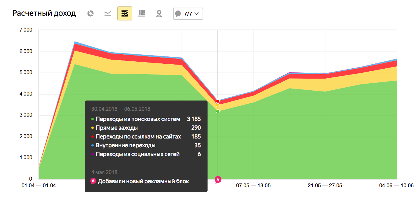Таким образом, владельцы сайта смогут узнать, сколько показов рекламы обеспечил каждый из разделов сайта, какова доходность рубрик и статей. Помимо этого, отчет показывает информацию о контенте, который принес больше доходов от рекламы. Сервис также отображает выручку, стоимость показов и другие показатели для пользователей, которые попали на сайт из поисковых систем, социальных сетей, рекламных каналов и других источников.