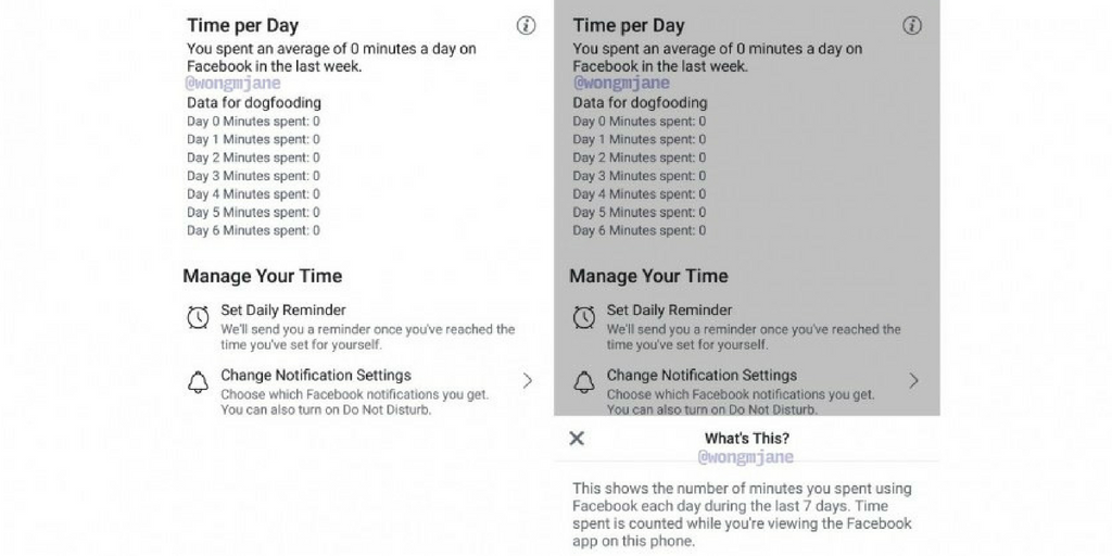Пользователи социальной сети получат доступ к недельной разбивке своего времени, потраченного на Facebook каждый день с каждого из ваших устройств (смартфон, десктоп). В приложении появится возможность устанавливать ограничение на время проведенной в соцсети. Когда ежедневный лимит будет исчерпан, вам придет уведомление об этом.