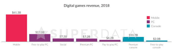 Общие доходы игровой индустрии за прошлый год выросли на 11% — до $110 млрд. Более половины рынка приходится на сегмент мобильных игр — $61,3 млрд. Причем 80% от всех доходов рынка видеоигр принес сегмент Free to play (позволяют играть без обязательного внесения денежных средств).