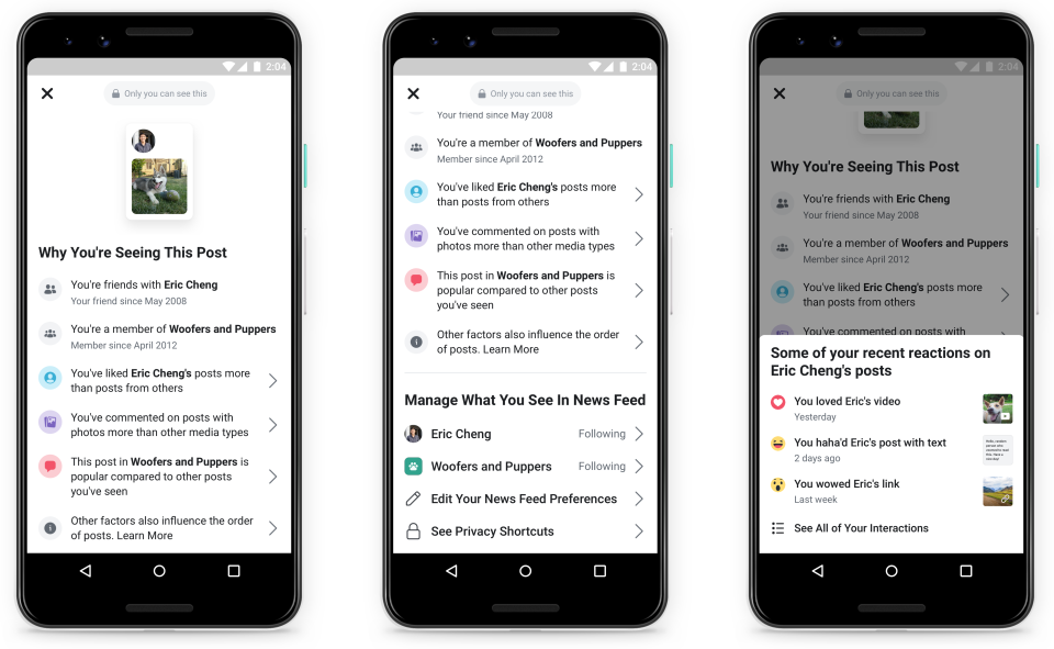 Пользователь сможет посмотреть, на основе каких данных соцсеть вывела в его ленту тот или иной пост
