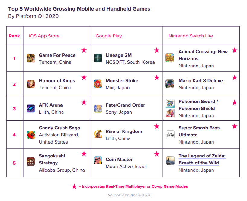 App Annie, платформа, анализирующая мобильные данные, совместно с международной исследовательской и консалтинговой компанией IDC подготовила отчет о состоянии игровой индустрии в первом квартале 2020 года