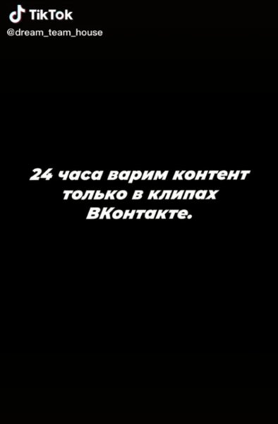Сообщество Dream Team House стало первым TikTok-хаусом в России, сейчас подписчиков официальной страницы объединения в китайской соцсети приглашают смотреть видео во «ВКонтакте». На своем YouTube-канале блогеры выложили ролик, где рассказали, как переехали в новый дом с помощью «ВКонтакте», однако в описании Dream Team House до сих пор значится как «дом, в котором живут тиктокеры».