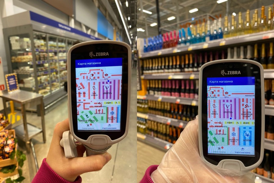 Сканер действует на базе уже существующего сервиса «ЛЕНТА Скан» и интеграции мобильных устройств Zebra PS20 с системой освещения. В светильники интегрирована система Visible Light Communication (VLC) — она позволяет излучать кодированные световые сигналы. Устройство Zebra с «ЛЕНТА Скан» расшифровывает сведения о местоположении покупателя и отображает его позицию на карте магазина.
