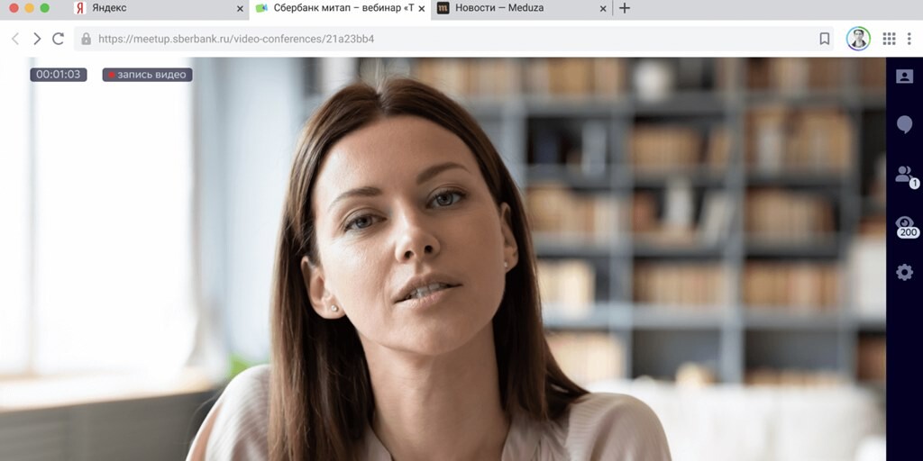 Вебинары поддерживают до 7 спикеров и 2 тыс. зрителей, которыемогут общаться в чате. Пользователей «СберМитапа» обещают избавить от«мучительного» поиска номеров и паролей для входа — участникам будет достаточнопрямой ссылки.