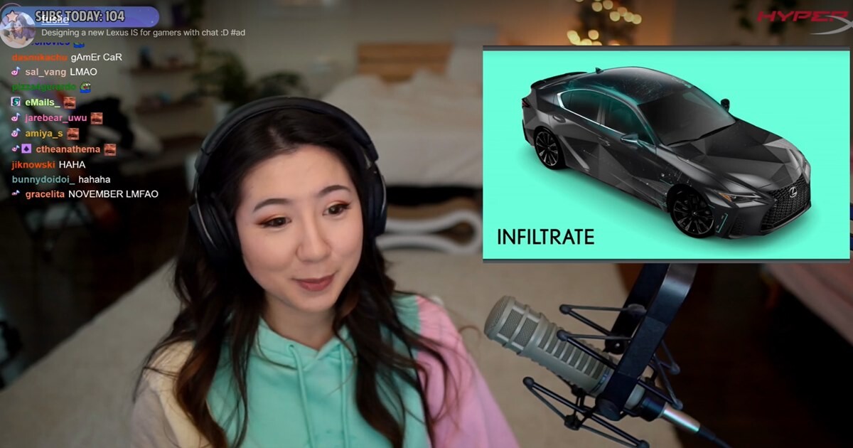Стример Fuslie провела в Twitch двухчасовуютрансляцию, во время которой пользователи моглипроголосовать за новый дизайн Lexus IS 2021, сообщаетMarketingDive. Участники опроса могли выбрать такие детали интерьера иэкстерьера автомобиля, как игровые консоли, мониторы, освещение, оклейкамашины.