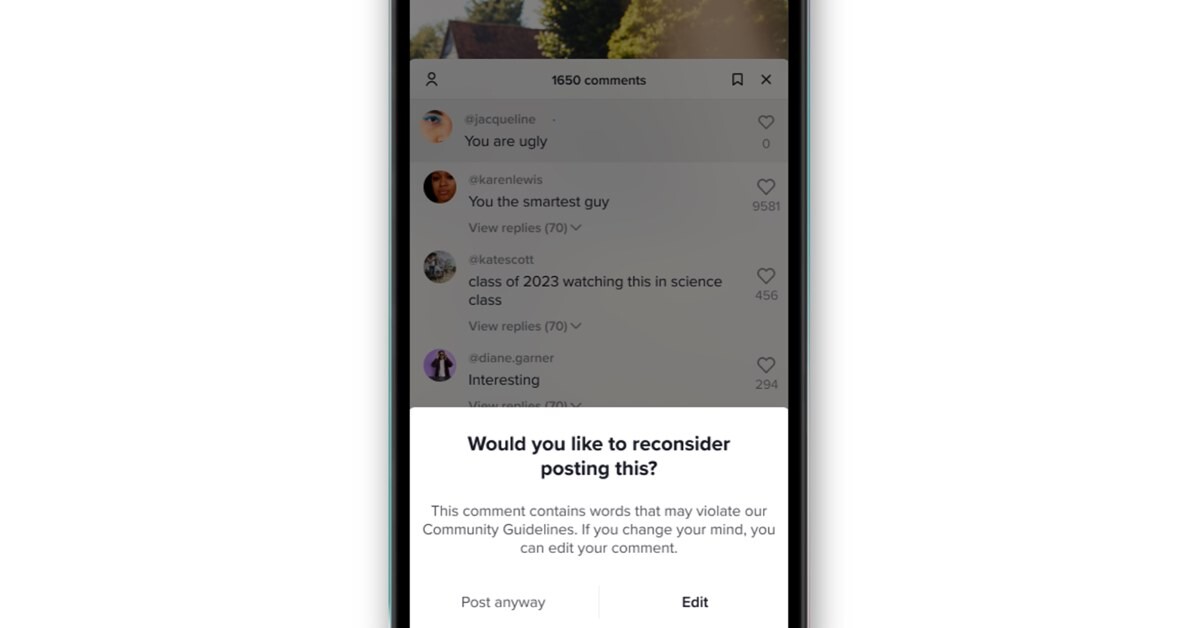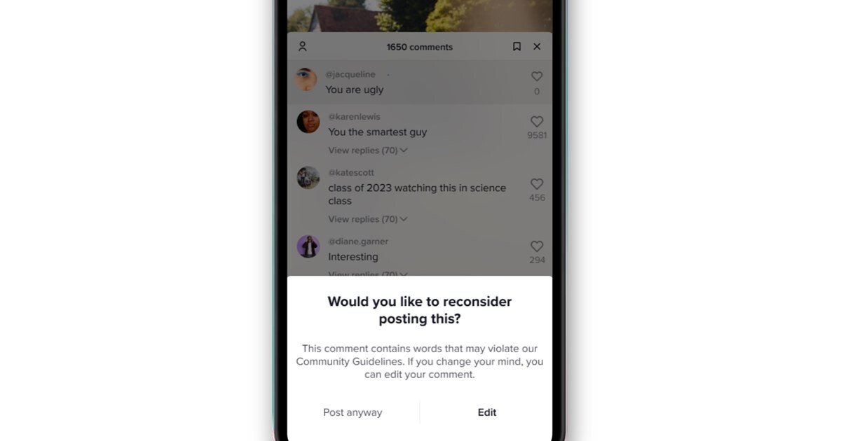 Соцсеть позволит пользователям фильтровать комментарии под своими видео и предложит редактировать оскорбительные высказывания, прежде чем запостить