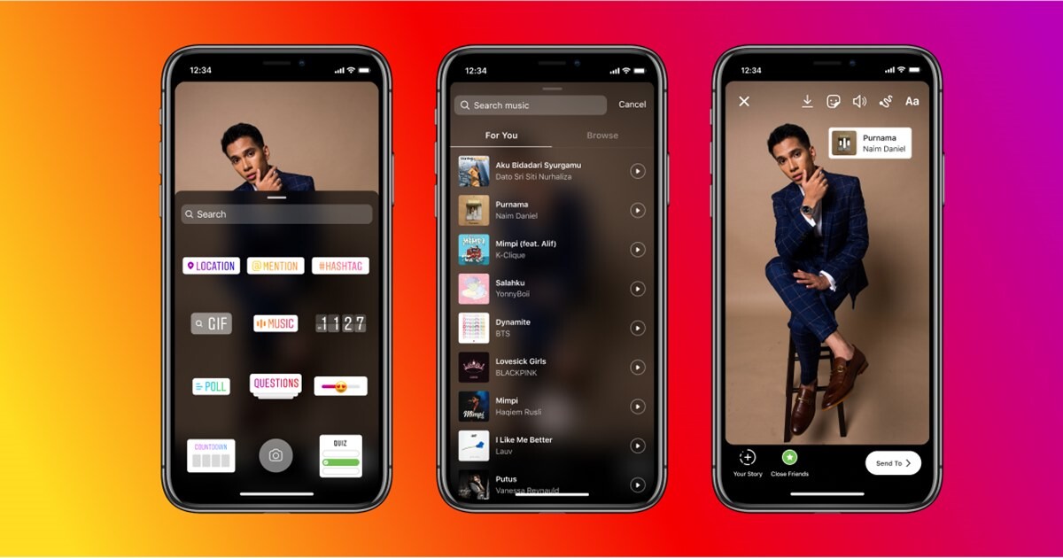 Пользователи Reels будут добавлять музыку из библиотеки приложения, а такжевыбирать ее из трендов или рекомендаций. Также пользователи смогут создаватьсвои оригинальные аудио.В Stories появится возможность добавления музыки. Пользователи должны будутнажать на значок стикера и выбрать стикер «Музыка» на выбранном фото или видеов галерее.