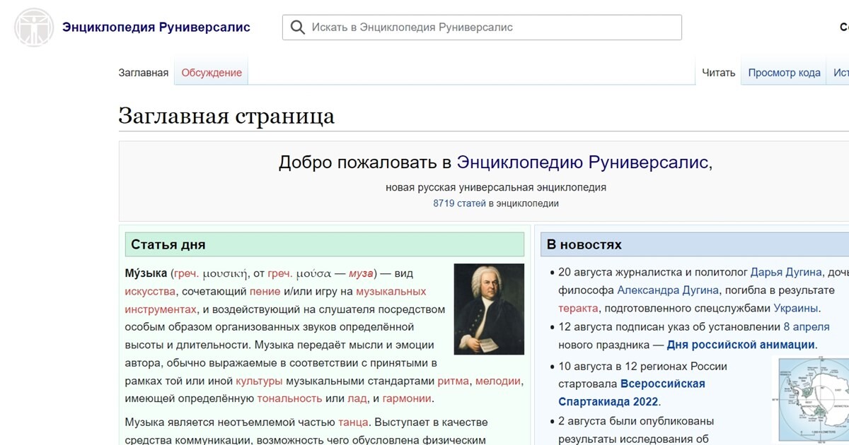 В России заработала онлайн-энциклопедия «Руниверсалис», расположенная на российских серверах