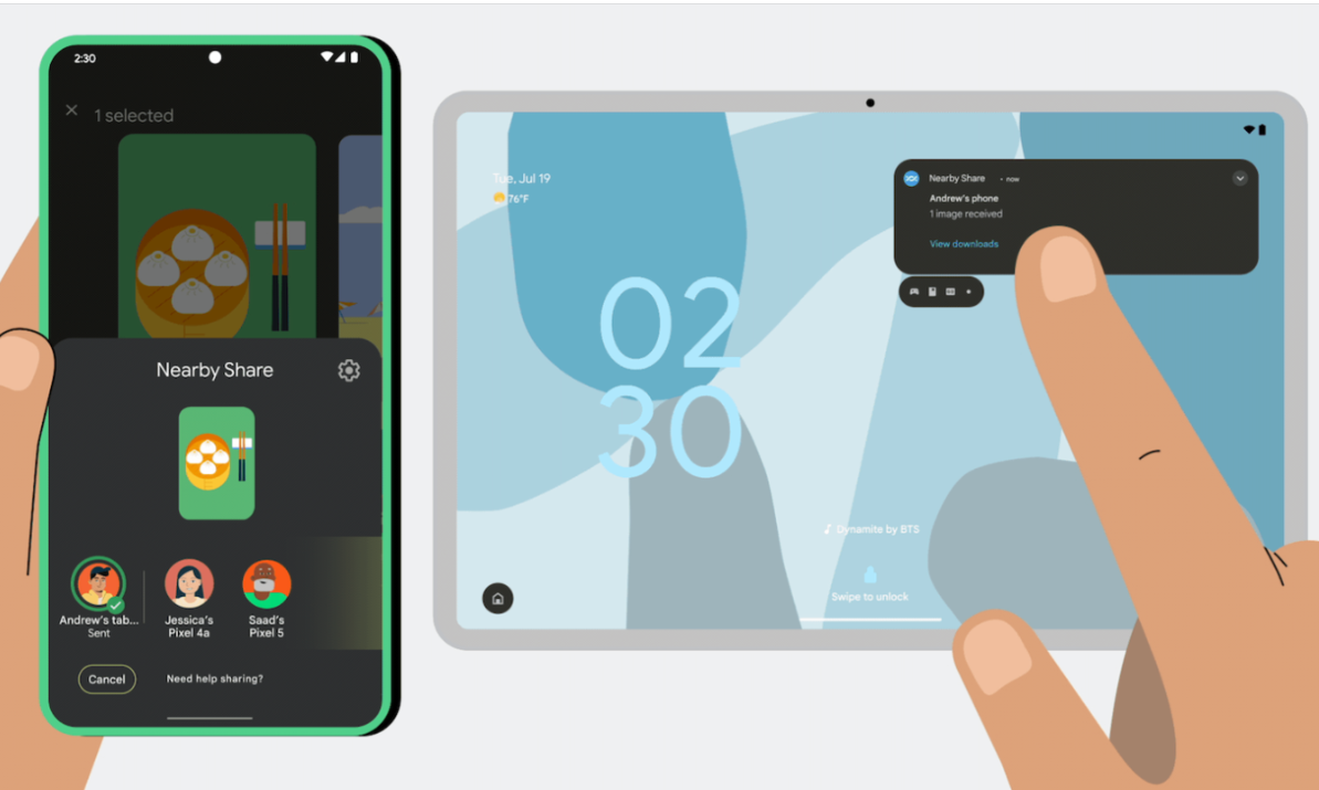 Множество новых функций от Google были опубликованы для устройств на базеAndroid, пишетTechCrunch. Самой ожидаемой новинкой стала возможностьпередачи файлов самому себе, работающая по аналогии с AirDrop от Apple. Функцияполучила название Nearby Share. Она позволяет делиться информацией через своюэкосистему телефонов, планшетов и Chromebook. Файлы автоматически передаютсямежду устройствами одним нажатием, поэтому пользователям не нужно вручнуюподтверждать процесс передачи.