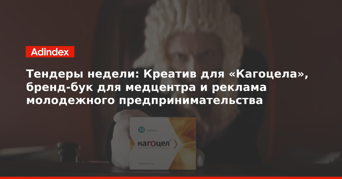 Тендеры недели: Креатив для «Кагоцела», бренд-бук для медцентра и реклама молодежного предпринимательства