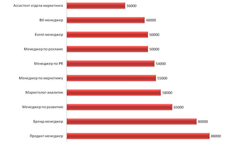 Рисунок 1. Средняя величина окладов специалистов рекламной отрасли