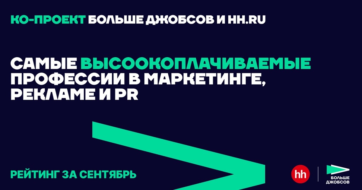 Топ-10 высокооплачиваемых вакансий сентября в рекламе, PR и маркетинге — подборка hh.ru и «Больше джобсов»