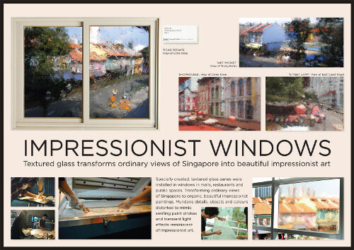 На стеклопакеты в окнах торговых центров, ресторанах и общественных зданиях Сингапура было нанесено покрытие по специальной технологии. В результате любой вид из такого окна принимает расплывчато-импрессионистические очертания. Выглядит очень привлекательно. Организаторы акции надеются, что насмотревшись на красочные «расплывчатые картинки», многие отправятся в галерею – знакомиться с настоящими картинами импрессионистов.