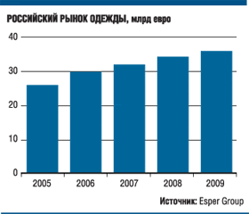 Согласно исследованию компании Esper Group, в первом квартале 2010 года оборот рынка одежды составил 10,8 млрд евро, что на 57% больше, чем за аналогичный период 2009 года. «Объем был достаточно большим за счет поставки в феврале весенне-летних коллекций из-за рубежа, а также за счет выхода крупных игроков на московский рынок — открылся четырехэтажный D&G и первый магазин Uniqlo», — пояснила РБК daily исполнительный директор Esper Group Екатерина Петухова. Кроме того, по ее словам, сыграло роль и укрепление курса рубля относительно евро, в котором идут расчеты по значительной части поставок. В 2009 году модный рынок в России вырос на 5%, до 36 млрд евро. Из игроков быстрее всех росли марки массового сегмента: к примеру, Zara — на 20%, H&M — на 24%. Большую часть рынка (60%) занимает женская одежда, которой в прошлом году было продано на 22,8 млрд евро. Этот сегмент, как и рынок в целом, вырос на 5%. Это самый низкий прирост за последние несколько лет: с 2005 года женский рынок рос в среднем на 12% в год.