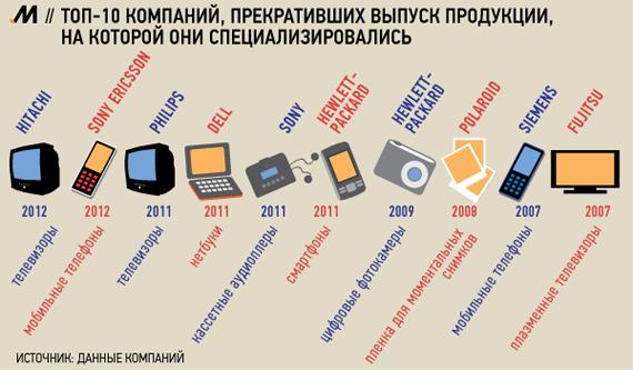 Топ-10 компаний, прекративших выпуск продукции, на которой они специализировались