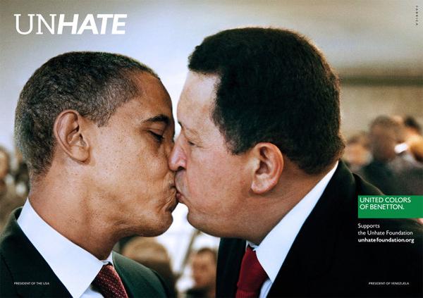 Benetton широко известна скандальными рекламными кампаниями. Так, например, в прошлом году в рекламе был использован фотомонтаж изображений целующихся политических и религиозных лидеров всего мира. В частности, на одном из плакатов, опубликованных в интернете, президент США Барак Обама изображен целующимся с председателем КНР Ху Цзиньтао, на другом - с президентом Венесуэлы Уго Чавесом.