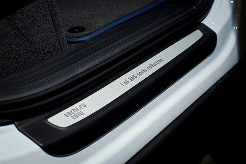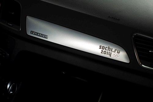 Машины серии «Коллекция Сочи» окрашены в эксклюзивный цвет Glacier White Metallic (белый металлик), а крышка багажника украшена эмблемой «Sochi 2014 Collection». На них установлены уникальные двухцветные колесные диски с надписью «Sochi» и стильные алюминиевые накладки порогов с надписью «1 of 365 Sochi Collection». Алюминиевая вставка с логотипом Игр есть и в салоне. Кроме того, в самой «простой» модели Q3 появятся такие дополнительные опции, как спортивные кожаные сиденья, безключевой доступ, датчики парковки, электропривод зеркал, усиленная аудио-система.