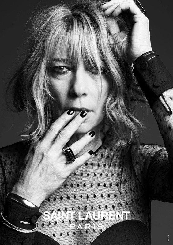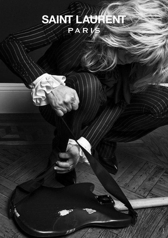 В начале 1970-х Хельмут Ньютон снимал Бьянку и Мика Джаггеров в одежде Ива Сен-Лорана на их свадьбе в Сен-Тропе. Слиман снова вспоминает о связи Saint Laurent с музыкой и запускает специальный проект. Для новой кампании дизайнер сфотографировал Ариэля Пинка, Ким Гордон, Кортни Лав и Мэрилина Мэнсона в весенне-летней коллекции французской марки. Напомним, что для одного из лукбуков Слиман запечатлел Скай Феррейру, принты для марки создает Grimes, а саундтреки к недавним показам Saint Laurent записывали Daft Punk и Ty Segall.