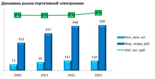 портативной электроники в 2013 году было продано около 110 млн. девайсов.