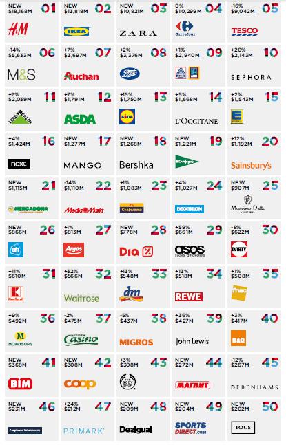 Interbrand, ведущее бренд-консалтинговое агентство, ежегодно публикующее рейтинг «Самые ценные мировые бренды» представляет четвертый по счету рейтинг «Самых ценных брендов в области розничной торговли»