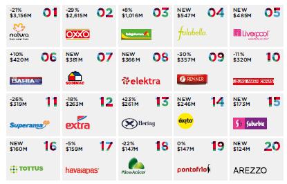 В рейтинге присутствуют 50 самых ценных североамериканских брендов, 50 – европейских, 30 брендов - представителей азиатского-тихоокеанского региона и 20 – латиноамериканских. Данный рейтинг составлен при активном участии Interbrand Design Forum, подразделения, специализирующегося на ритейле.