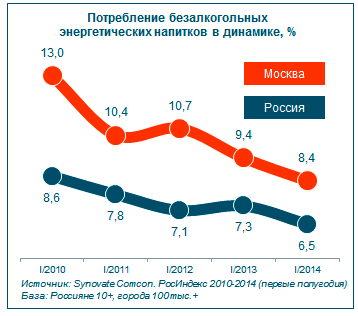 К тому же, количество потребителей энергетиков в России постепенно снижается: с 2010 года в общем по стране их стало меньше на 2,1%, в Москве – на 4,6%.