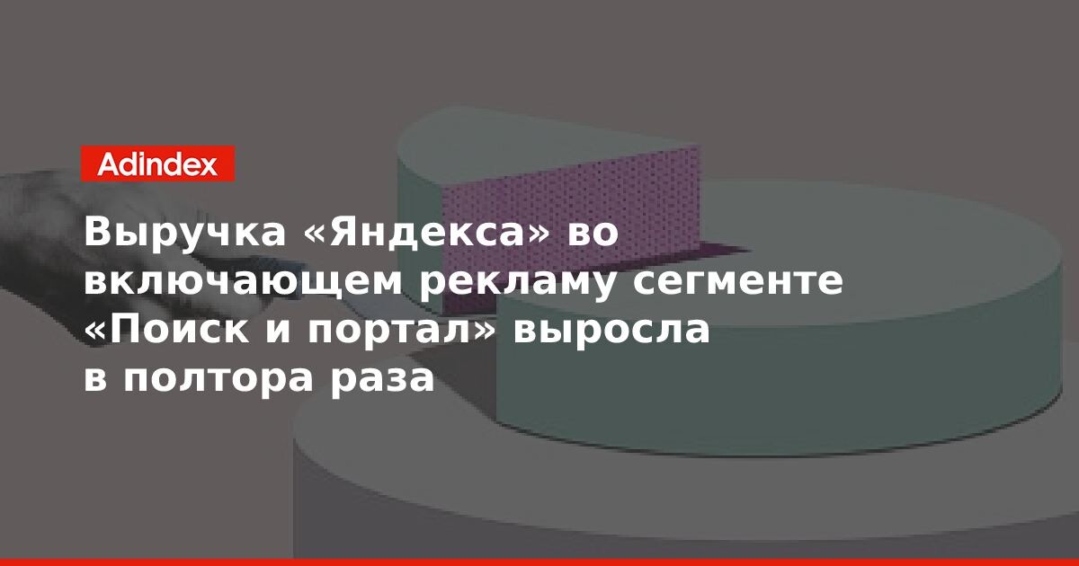 Выручка «Яндекса» во включающем рекламу сегменте «Поиск и портал» выросла в полтора раза