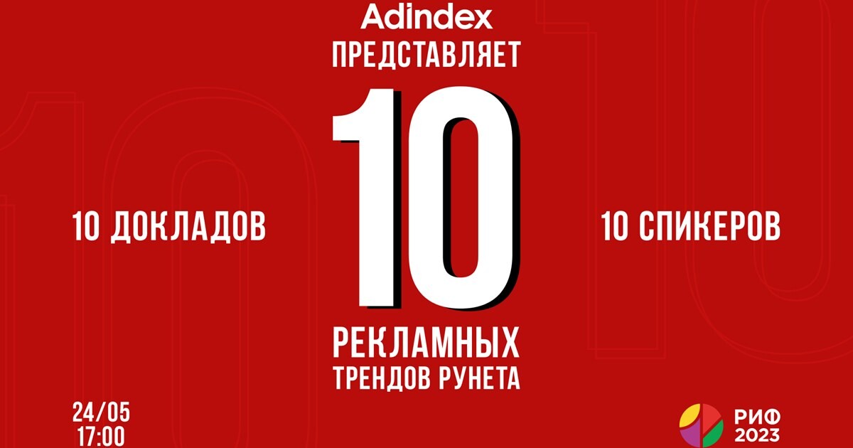 Секция AdIndex «10 рекламных трендов Рунета в 2023 году» на РИФ-2023 уже сегодня!