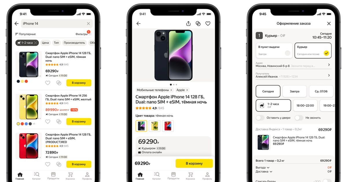 Также изменения коснулись цветовой гаммы спецодежды курьеров и оформлениефирменного приложения. Теперь в них сделан акцент на фирменные цвета«Яндекса».