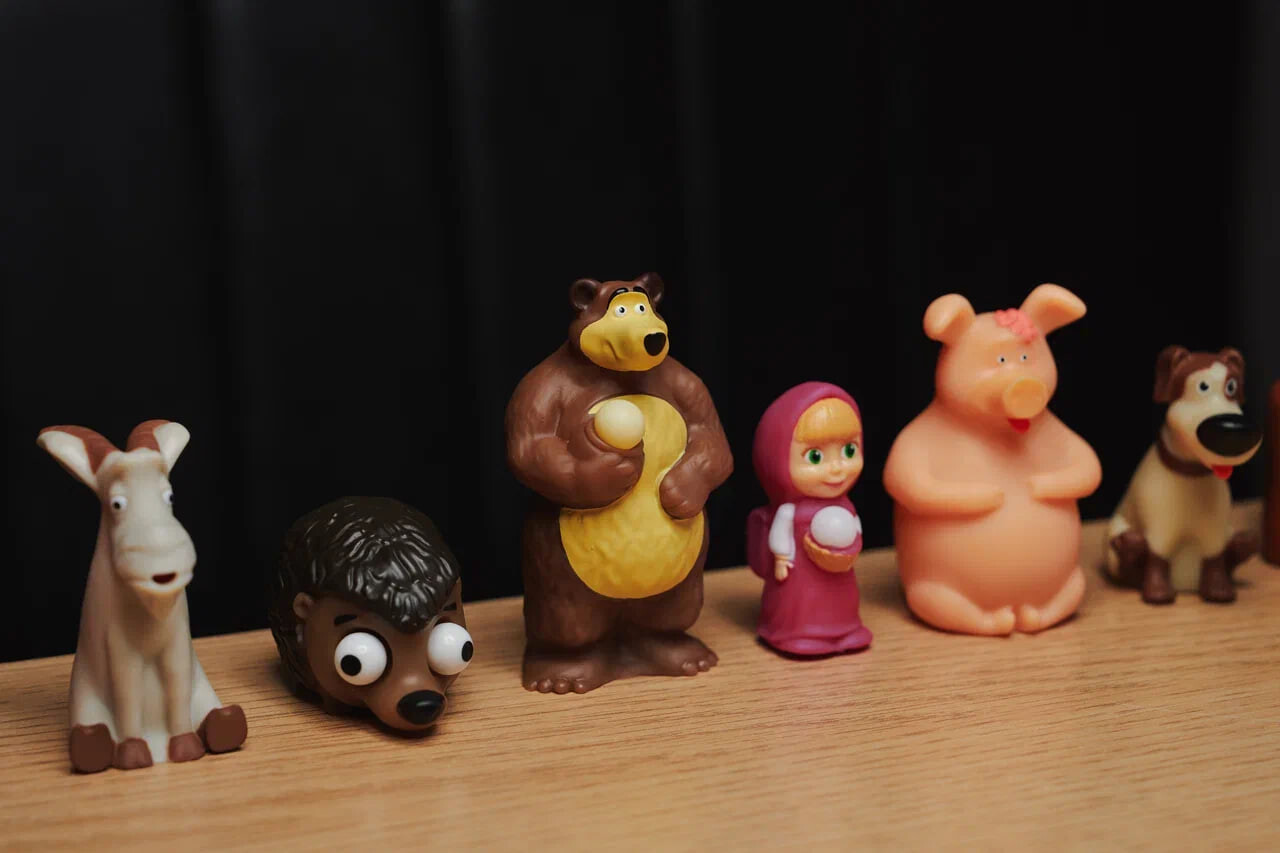 В коллекцию вошли 10 фигурок с персонажами мультсериала: Маша, Медведь,Заяц, Волк, свинка Розочка, Еж, Коза и Пес. Как рассказали впресс-службе, к каждой игрушки при нажатии появляется «свояособенность» — например, у Маши надувается мороженое в руках, у Медведяоткрывается бочонок с медом, а у Волка с Ежиком выскакивают глаза из орбит.