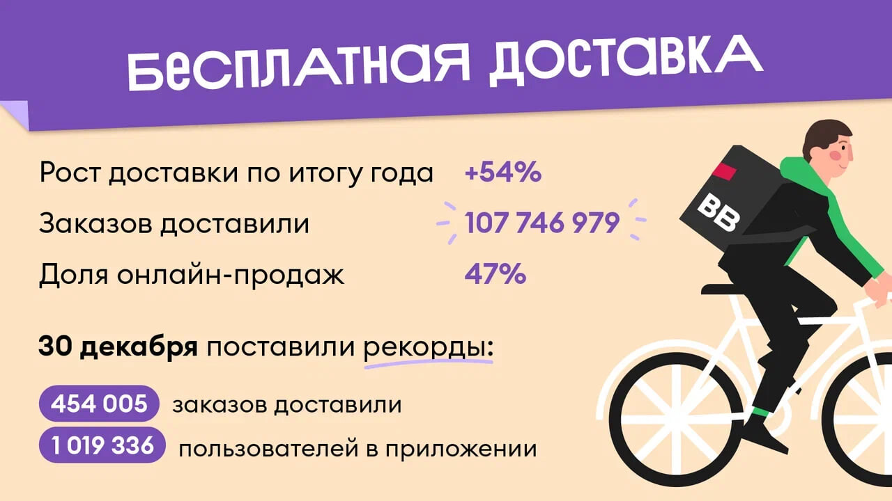 Сеть складов для сборки онлайн-заказов выросла до 147 точек. Курьеры«ВкусВилла» доставили 107,7 млн заказов, это на 52% больше, чем в 2022 г.
