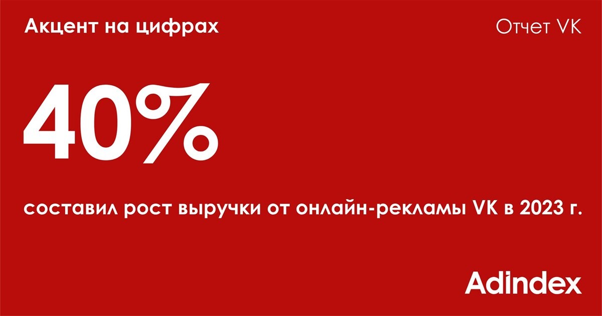 Группа VK увеличила выручку от онлайн-рекламы на 40% в 2023 г. по сравнениюс 2022 г. Показатель достиг 79,7 млрд руб. Общая выручка компании выросла на36% год к году — до 132,8 млрд руб.