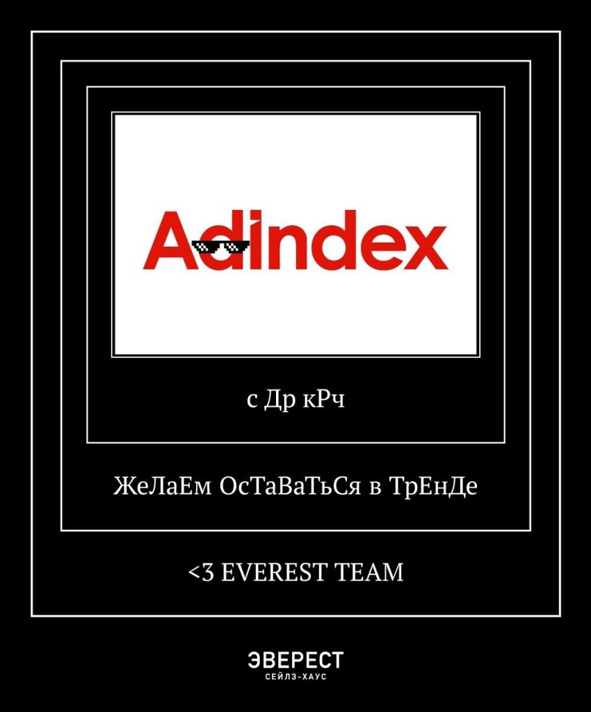 Сегодня AdIndex стал на год взрослее, нам исполнилось 19 лет.Красивая цифра, и совсем не верится, что небольшая команда одновременно создаетбольшое медиа, добывает горячие эксклюзивы, считает самые влиятельные в рекламерейтинги и организовывает крутые бизнес-мероприятия, в том числе международногоуровня. Все это было бы невозможно реализовать без талантливых, неравнодушныхэнтузиастов, влюбленных в рекламу.