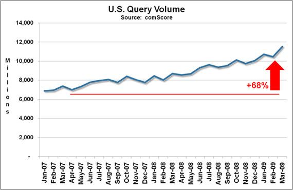 Согласно последнему отчету исследовательской компании comScore, за последние два года число поисковых запросов в США росло в три раза быстрее, чем количество кликов по ссылкам в результатах поиска – 68% против 18%.