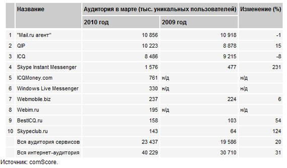 Более популярными у россиян оказались Mail.ru агент и QIP
