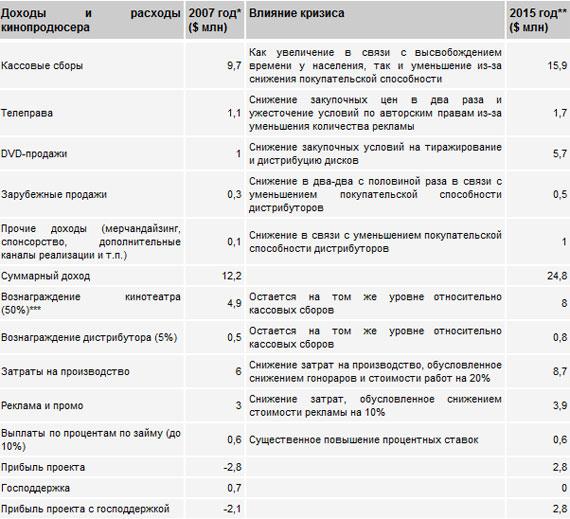 Бизнес-модель производства одного кинофильма в 2007-2015 годах
