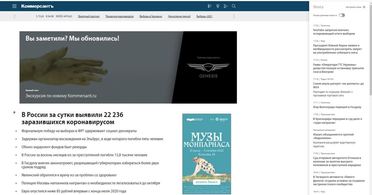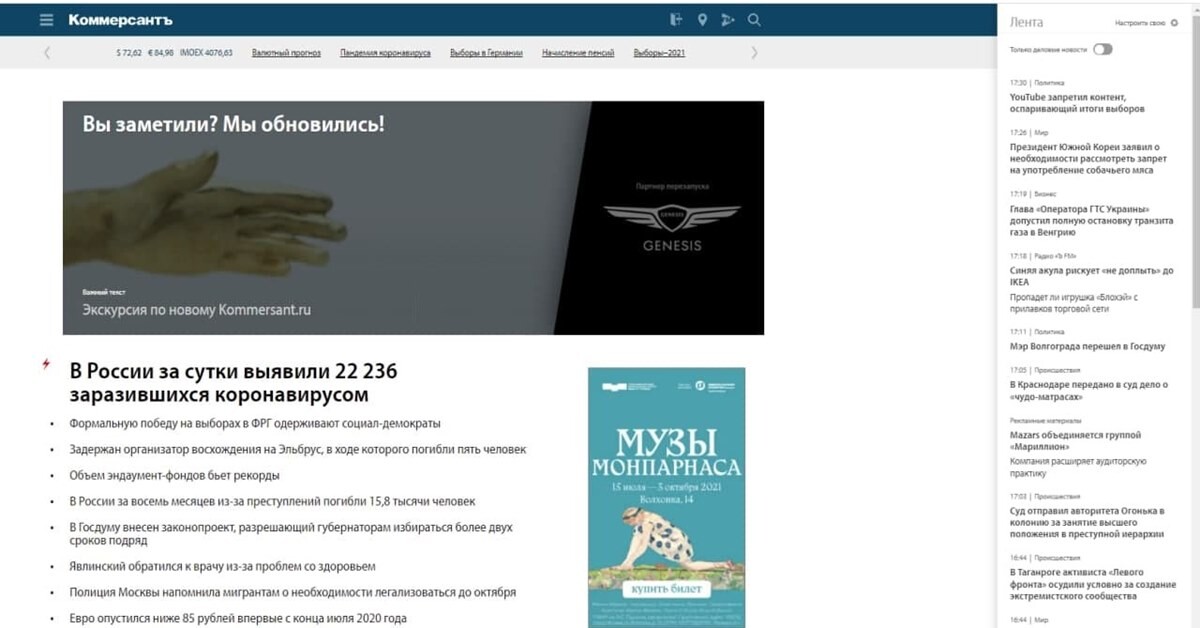 «Коммерсантъ» обновил структуру и дизайн сайта