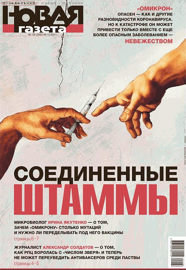 В декабрьской обложке «Новой газеты» сплелось божественное, научное имирское. В объектив журналистского микроскопа попала борьба с новым штаммомкоронавируса. Омикрон рассматривают здесь с разных позиций — биологии,просвещения, гражданской ответственности и, конечно же, политики.