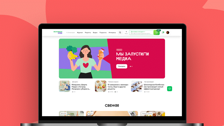 Команда работала над «Медиа», который был также сопряжен с редизайномофициального сайта vkusvill.ru. В компании учли, что более 70% трафика идет смобильного телефона, поэтому сайт и «Медиа» адаптивны для мобильной версии.