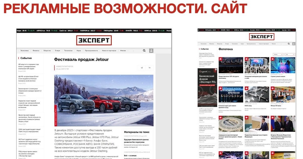 При подготовке запуска сайта и мобильной версии «Эксперт» отказался отpop-up баннеров. По мнению компании, это не очень хороший инструмент. У изданияесть классические баннеры, их тоже немного. Есть интерскроллер, который немешает читателям встречать информацию в самом материале.
