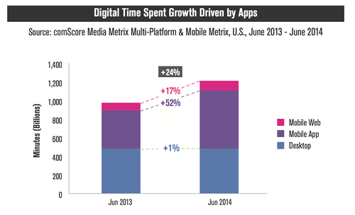Согласно последнему отчету ComScore о мобильных приложениях в США, популярность приложений набирает обороты, а потребители тратят все больше времени, выходя в сеть со своих смартфонов и планшетов