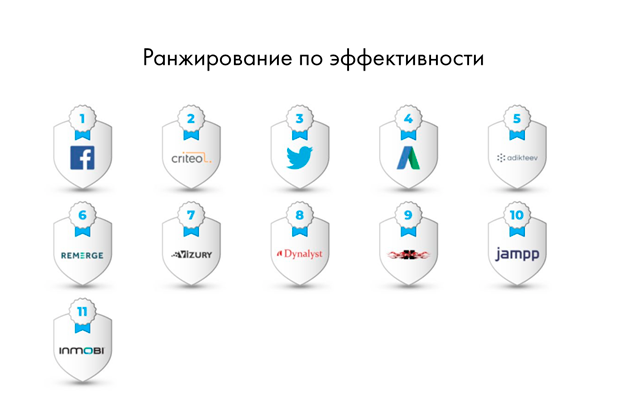 В первом в индустрии рейтинге по ретаргетинговым конверсиям тоже лидирует Facebook, а на втором месте — специализирующаяся на ретаргетинге и являющаяся партнером Facebook по маркетингу Сriteo.