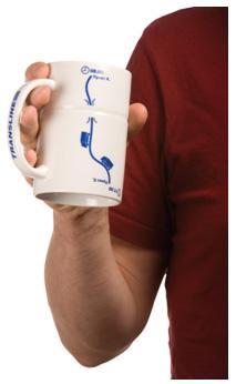 Общие ручка и дно объединяют в один предмет две кружки разного объема – кофейную и чайную. Достаточно легкого движения руки, чтобы преобразить кофейную кружку в чайную и наоборот.
