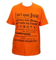 Веселый подарок для путешественников: пародия на разговорник с одной единственной фразой «Я не говорю по...» на двенадцати языках. Впрочем, футболка может играть и утилитарную роль, если ее владелец действительно не знает языка страны пребывания. Если показать собеседнику нужную строчку, он поймет, что нужно переходить к альтернативным способам общения.