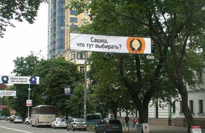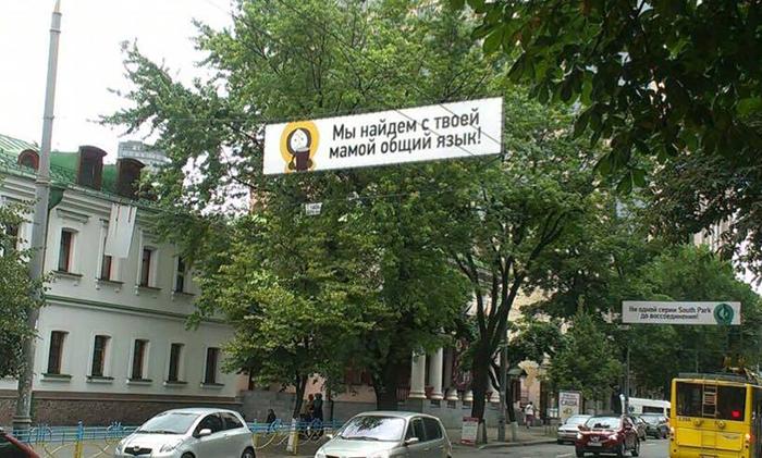 Около двух недель назад в Печерском районе появились ситилайты, на которых Кенни, персонаж мультсериала «Южный парк», произносил следующие фразы: «Будем вместе, как ни крути!», «Саша, перелайкаю все твои фото!», «Саша, мне есть чем удивлять!», а также обещал решить все проблемы и даже найти общий язык с Сашиной мамой, пишет украинское издание «Вести».
